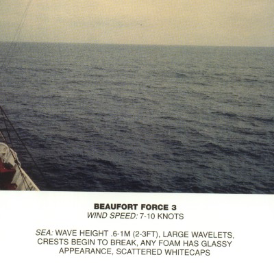 Beaufort number | Description | Wind speed | Wave height | Sea conditions | Land conditions | Sea state photo |